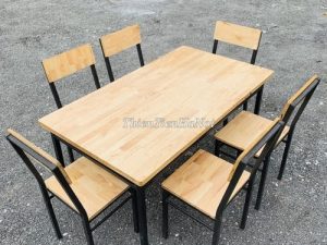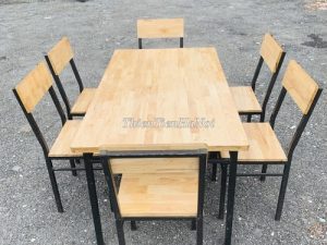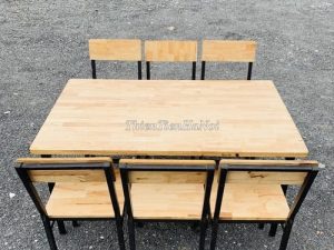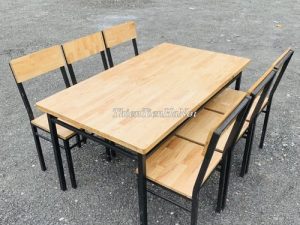 Chất liệu: khung sắt, mặt gỗ cao su ghép