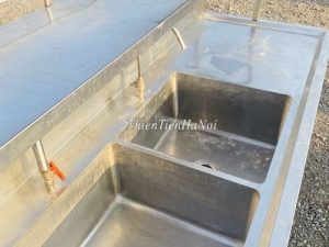 H081123 – Bồn rửa đôi có chờ kèm kệ + Bẫy mỡ (1m8)
