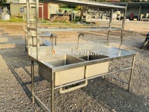 Tên sản phẩm: Bồn rửa đôi có chờ kèm kệ