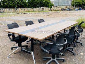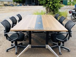 Chất liệu: Khung thép sơn tĩnh điện, mặt bàn gỗ công nghiệp phủ melamine