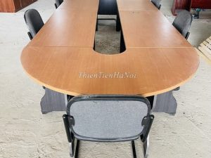 Mặt bàn phẳng dày 2cm, 2 phần đầu bàn tại vị trí chủ tọa quây oval mềm mạ