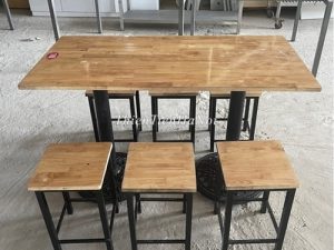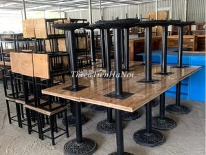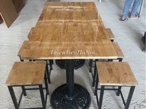 Chất liệu: chân gang, mặt gỗ cao su ghép