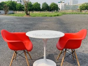 Ghế mặt bọc nhựa PP, chân gỗ sồi đan