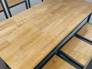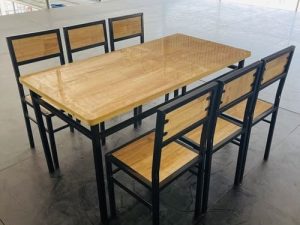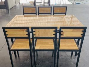 Chất liệu: khung sắt, mặt gỗ cao su ghép