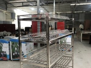 Thiết kế tiện lợi có 3 tầng dưới để chén tô, 2 tầng trên để dĩa, phù hợp cho quán ăn, nhà hàng.