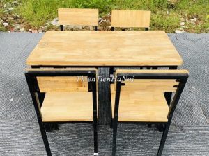 Chất liệu: khung sắt, mặt gỗ cao su ghép